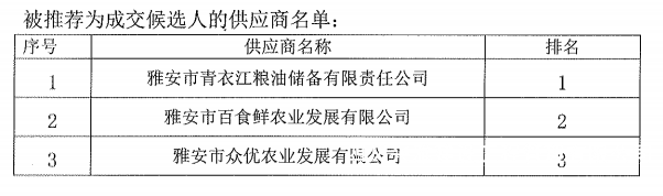四川兴雅建设工程管理有限公司食材(米面油)采购配送服务项目-中选结果公示